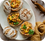 Toppings: refried black beans, veg chilli con carne, squash sweet potato beans chilli.(2.50)each